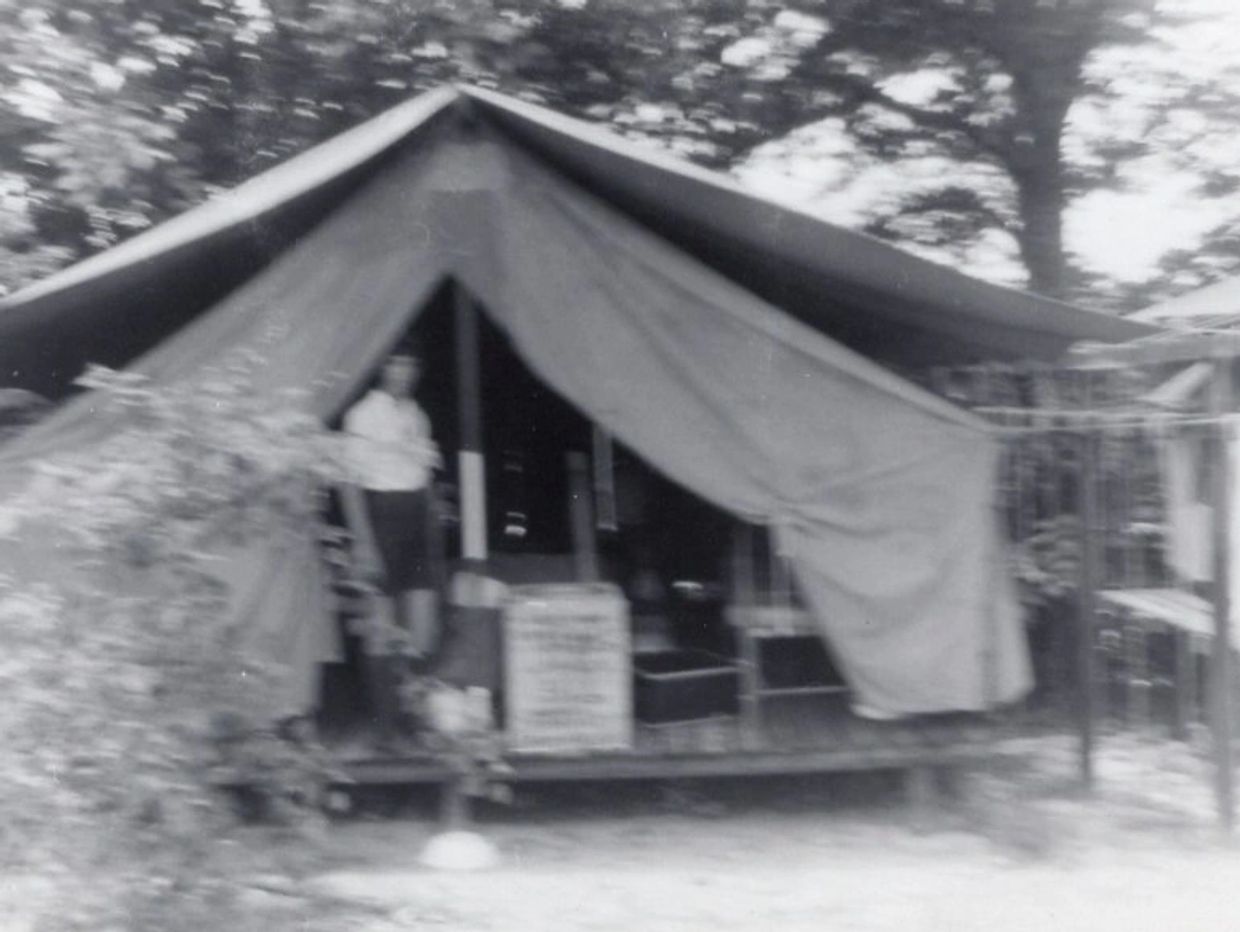 Looking back, I can remember so many great experiences at this camp. There was an island, near the camp, where we would go hone our survival skills. First, we built our kitchen area, known as a Chippewa kitchen. Then, everyone would do what were known as capers. These were chores like digging a latrine, building the camp furniture, pitching tents, or KP duty. We would canoe over to the island, with all our supplies, and spend three or four nights camping out, basically roughing it. During the daytime, we would practice our skills in sailing, canoeing, and orienteering. At night, we would sit around the campfire singing camp songs, telling ghost stories, and stargazing. see PHOTO 7