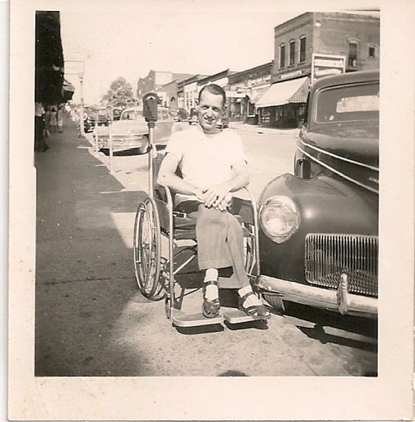 Along with Great Aunt Martha, the other biggest influence from my mother’s family was my Uncle Tom. He was one cool cat! In fact, we nicknamed him Thomas Q Pussycat. At age 14, he developed polio, the second pandemic of the 1900s. He did not let that keep him down! He went to college and became a watchmaker. He also had something to do with constructing roads. During part of his convalescence he got to meet Franklin Roosevelt at Warm Springs, Georgia. He never let his disability keep him down! Determined to drive, he petitioned the State of West Virginia to allow him to use hand controls in his car. SEE PHOTOS 16 & 17 (below) He was an avid outdoorsman, a writer, radio personality, civil rights advocate, and a spokesman for the differently abled.
